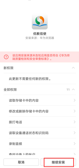 4.进入优教信使APP下载界面如图1-9,可以选择安全下载(需要下载安装QQ浏览器),或者其他方式下载,以下以其他方式下载为例。